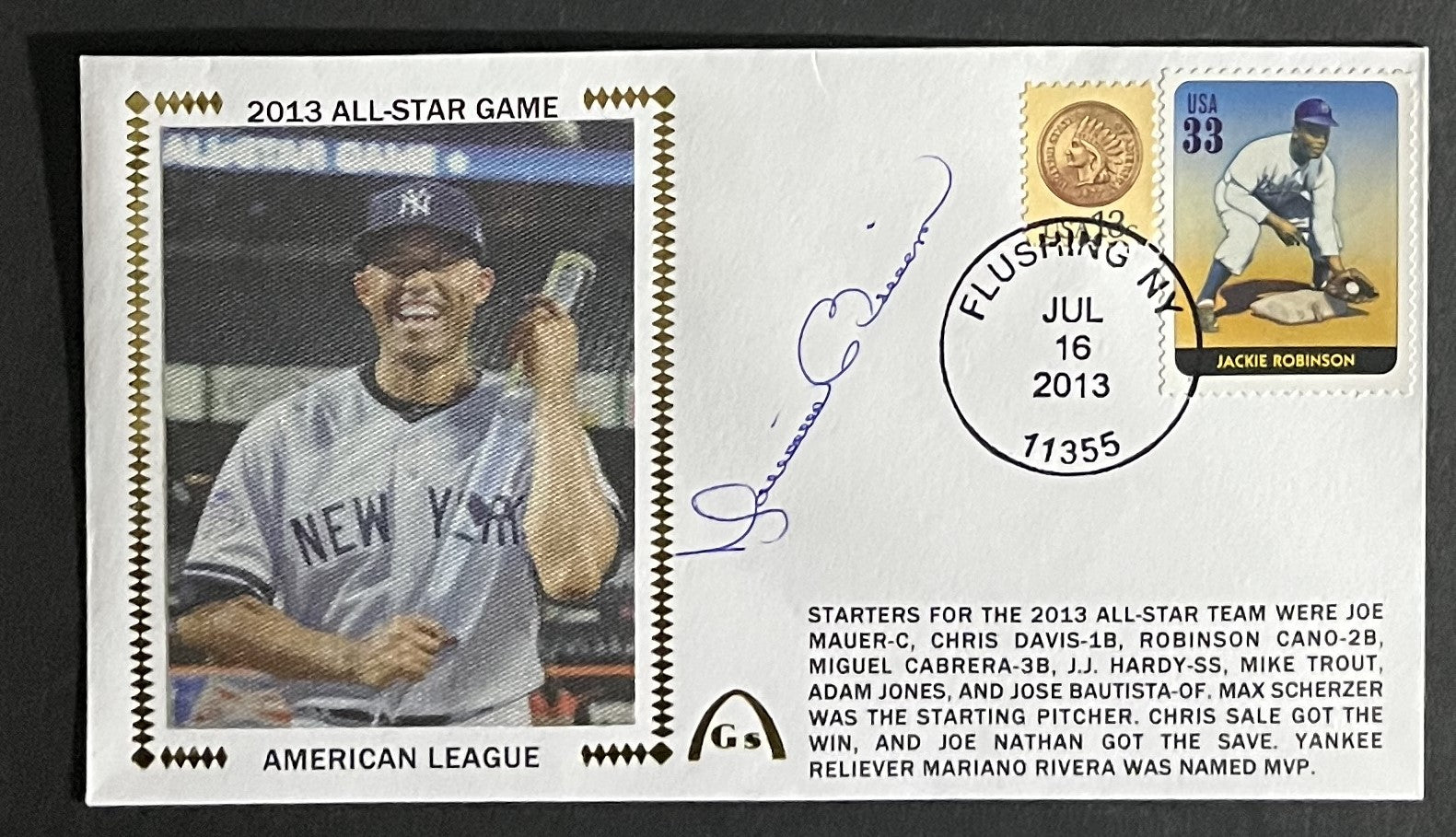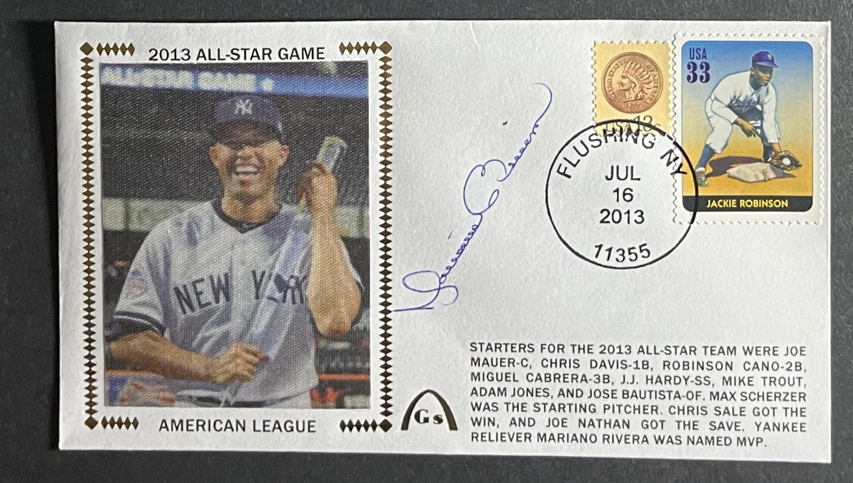 Mariano Rivera 2013 All-Star MVP Autographed Gateway Stamp Envelope - New York Yankees